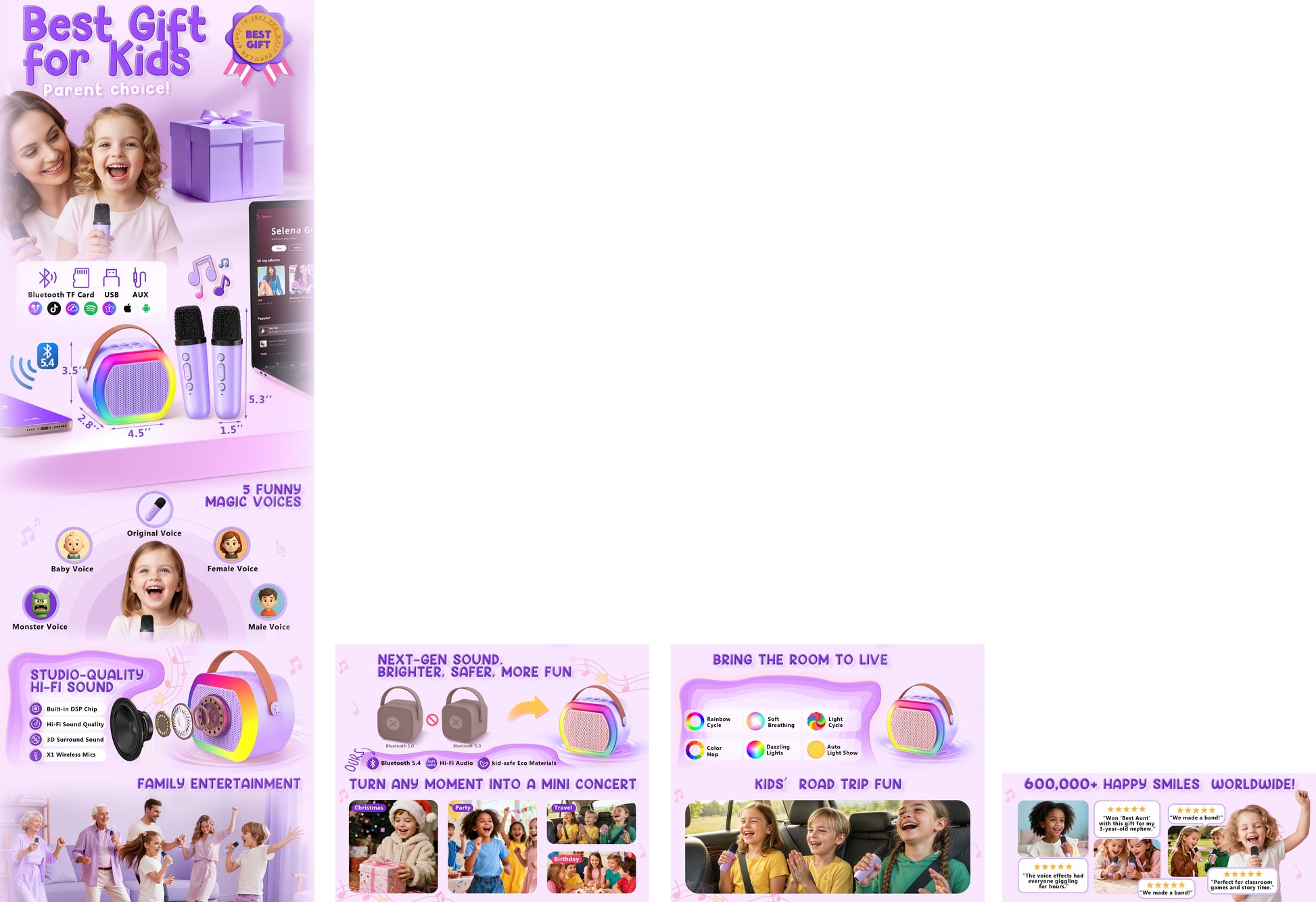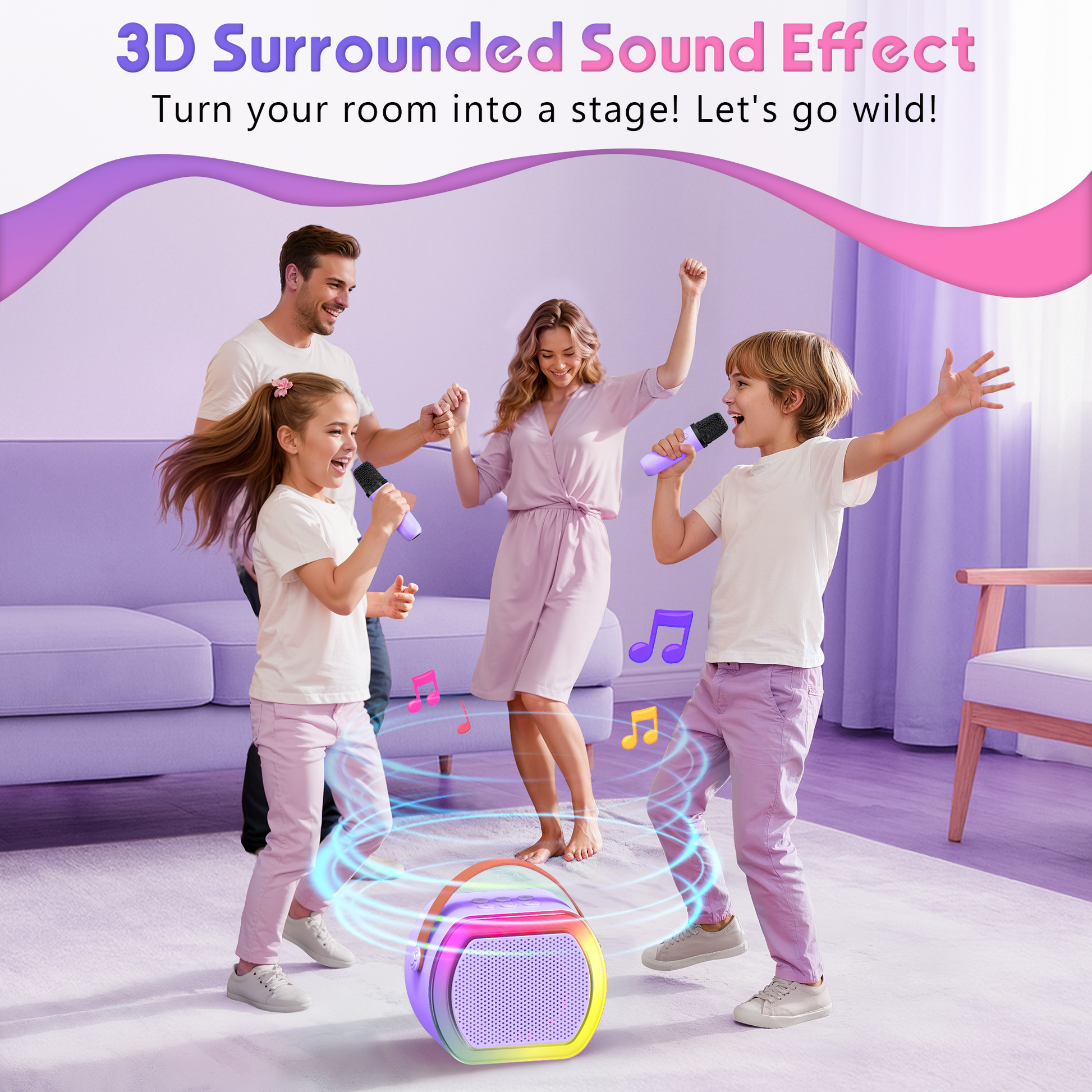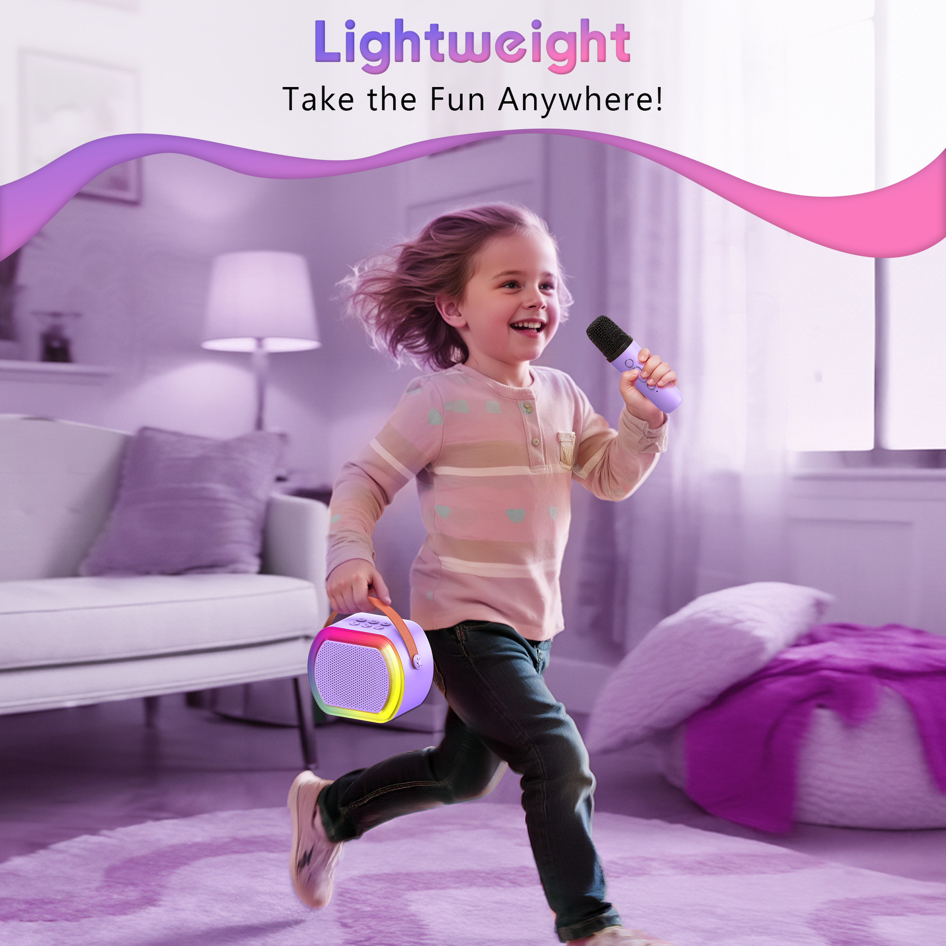 - [Magical Light Show] - Spark excitement with 4 multicolor light modes, The LED lights beats with the rhythm of the music, turning any bedroom into a fun concert stage or disco party,Crafted from Child-Safe & Durable Materials.ensuring safety while little stars rock the mic.