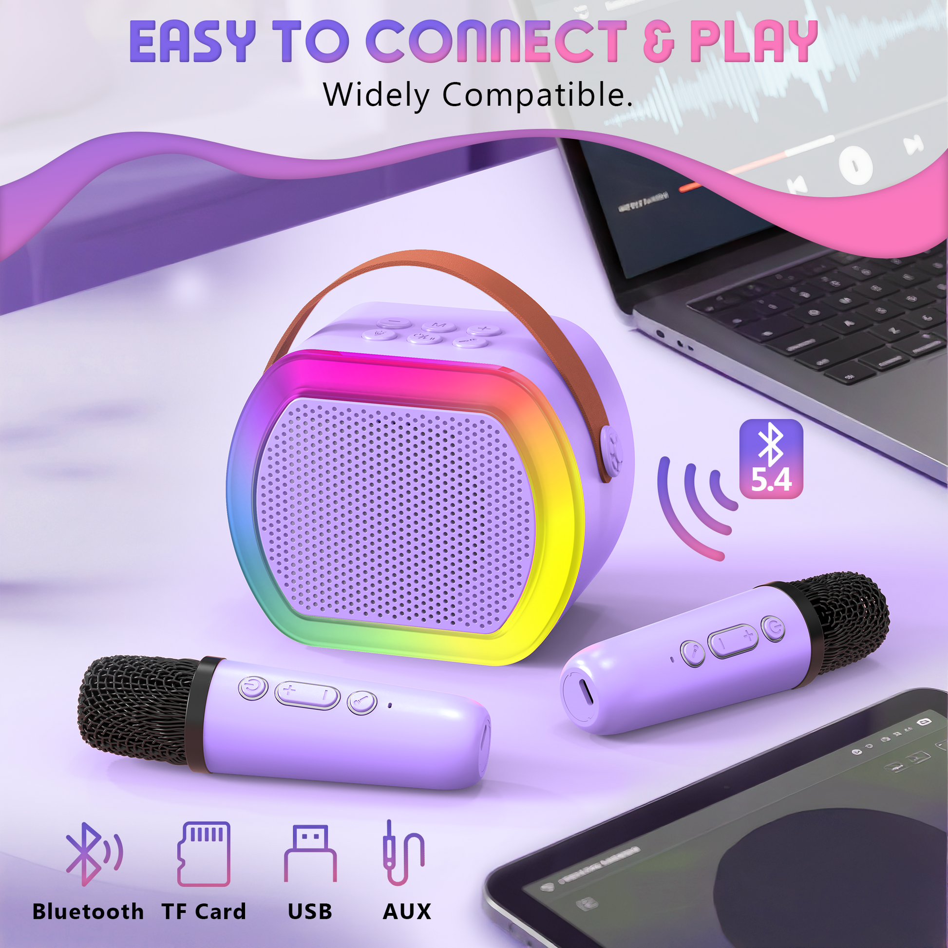 - [Upgraded Hi-Fi Sound & Bluetooth 5.4] - This best mini karaoke machine pairs in seconds via next-gen Bluetooth 5.4 and stays rock-solid, even in busy rooms. A smart audio chip delivers clearer vocals and balanced bass. Lower latency keeps music and mic audio in sync across streaming apps—no dropouts.