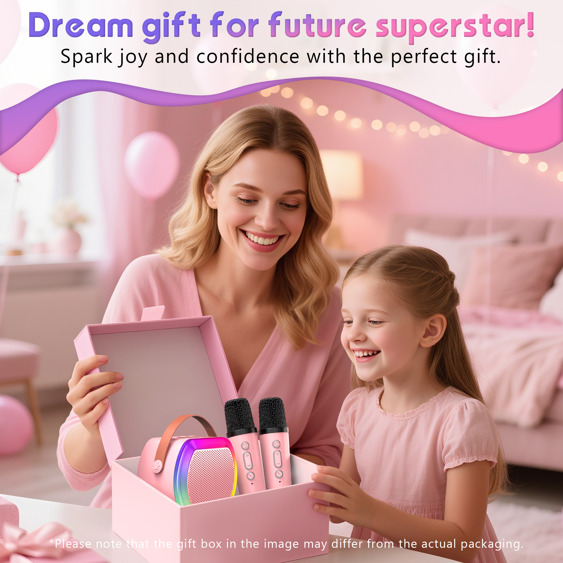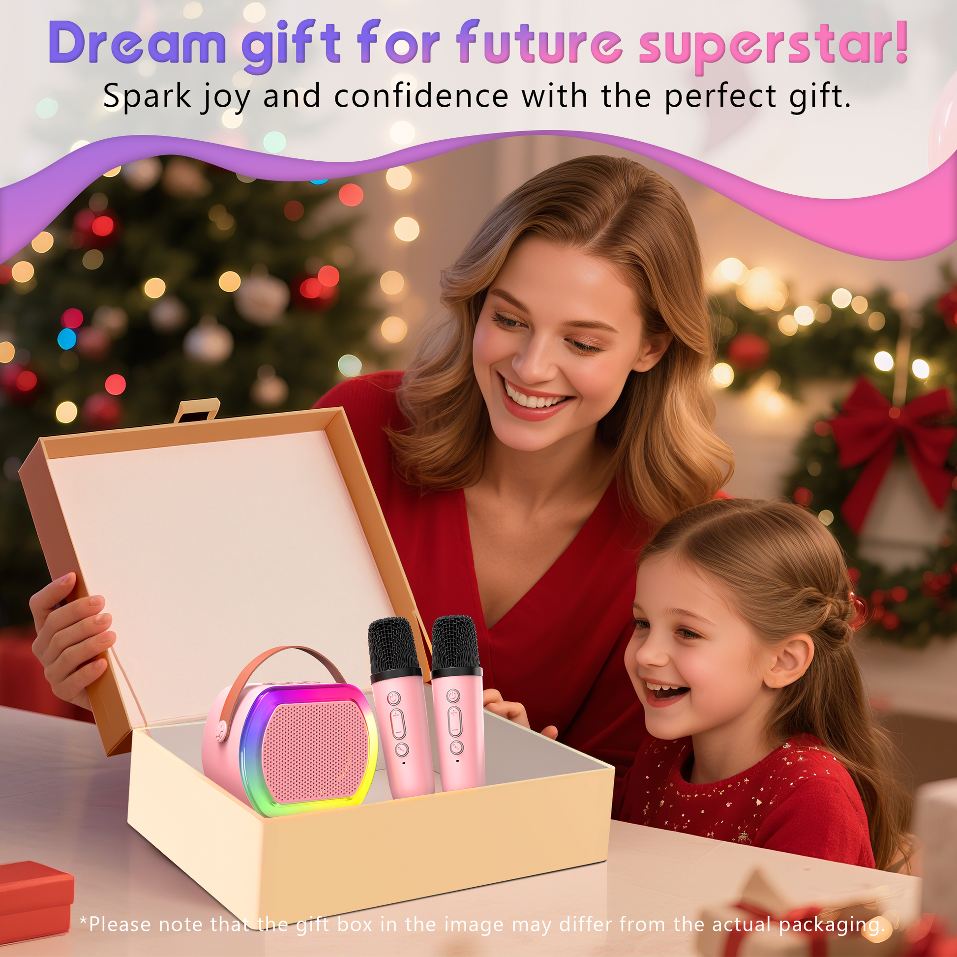 - [Perfect Karaoke Gift for Young Stars] - Includes a stylish gift box-Make any birthday,christmas,halloween or holiday special with this karaoke machine for kids! Includes a stylish gift box it cool toys for 3-12+ year old girl,A hit for everyone from toddlers to adults,It’s a surefire hit that sparks creativity and confidence