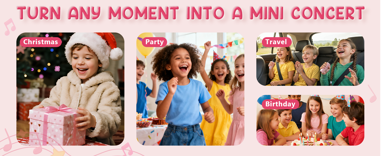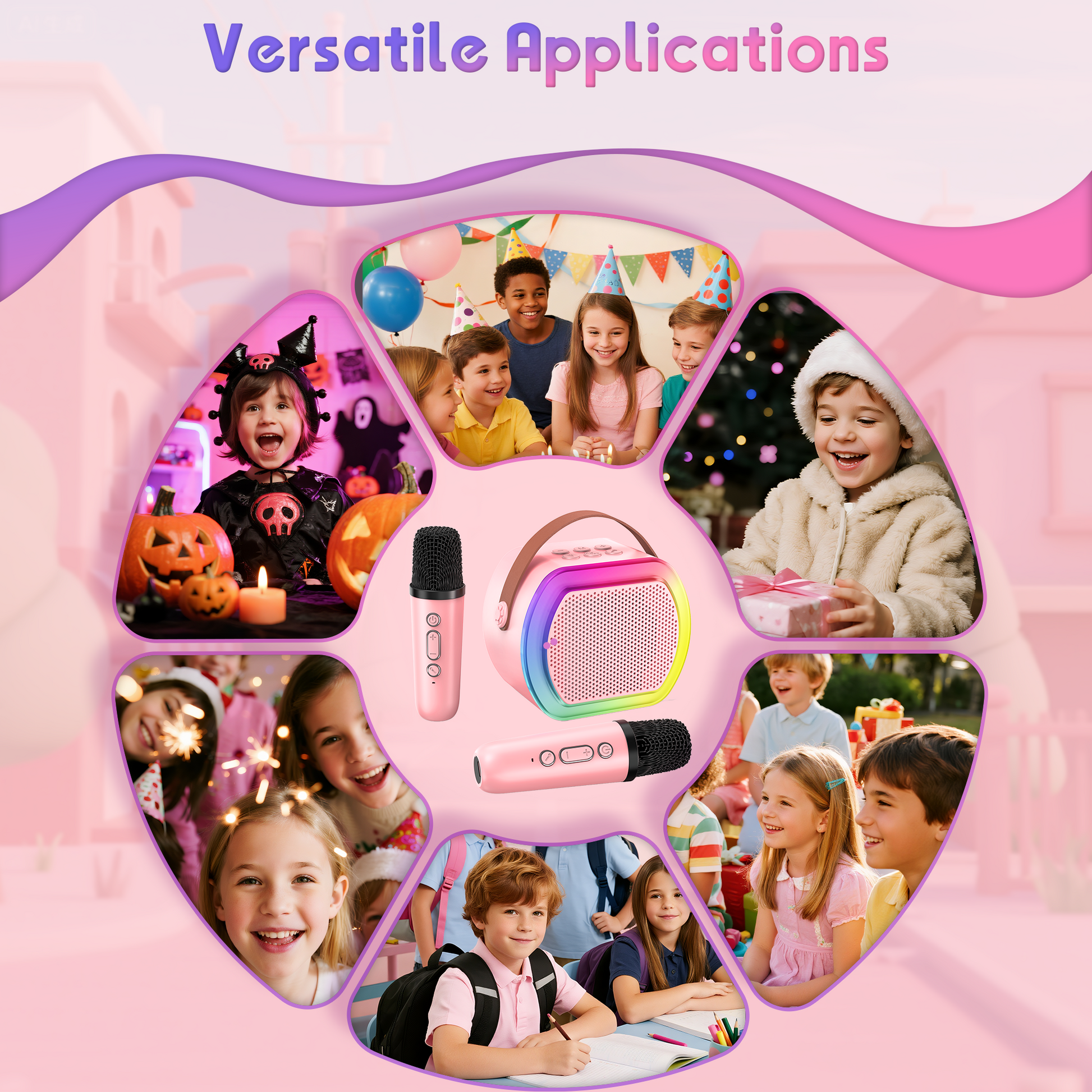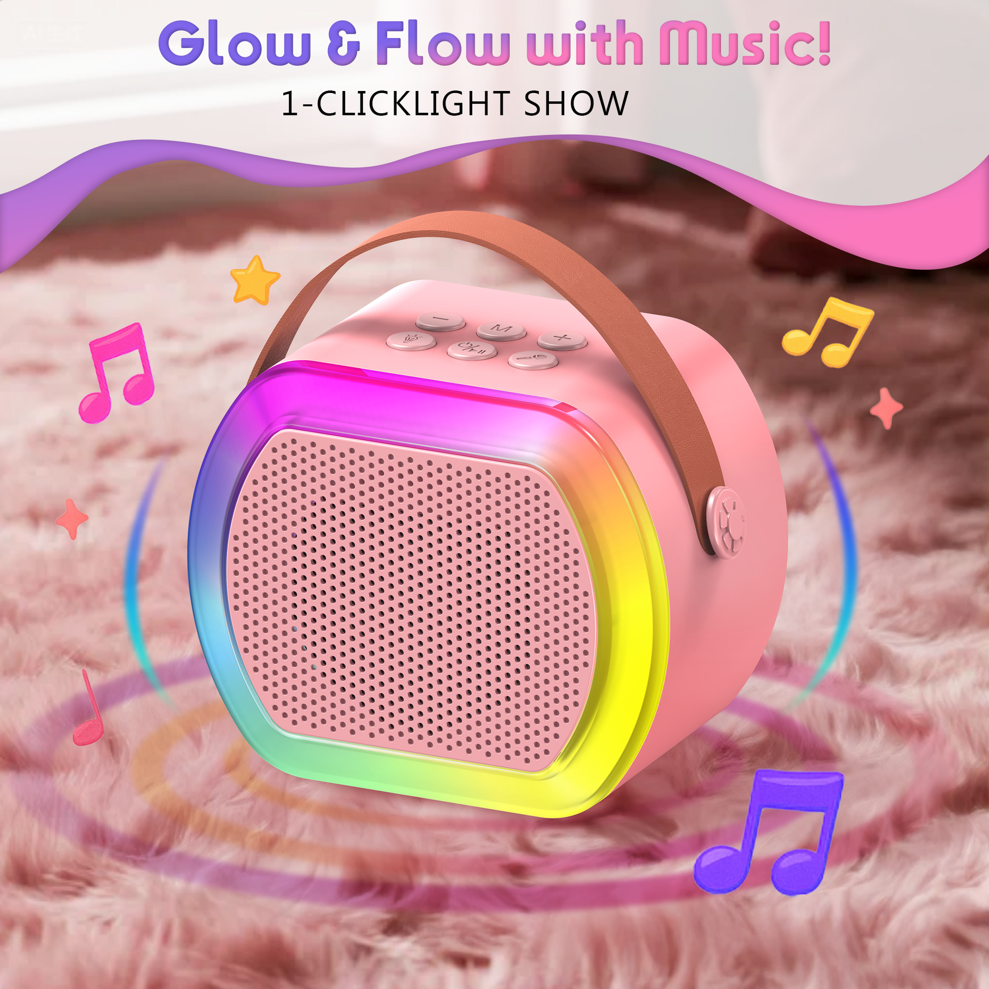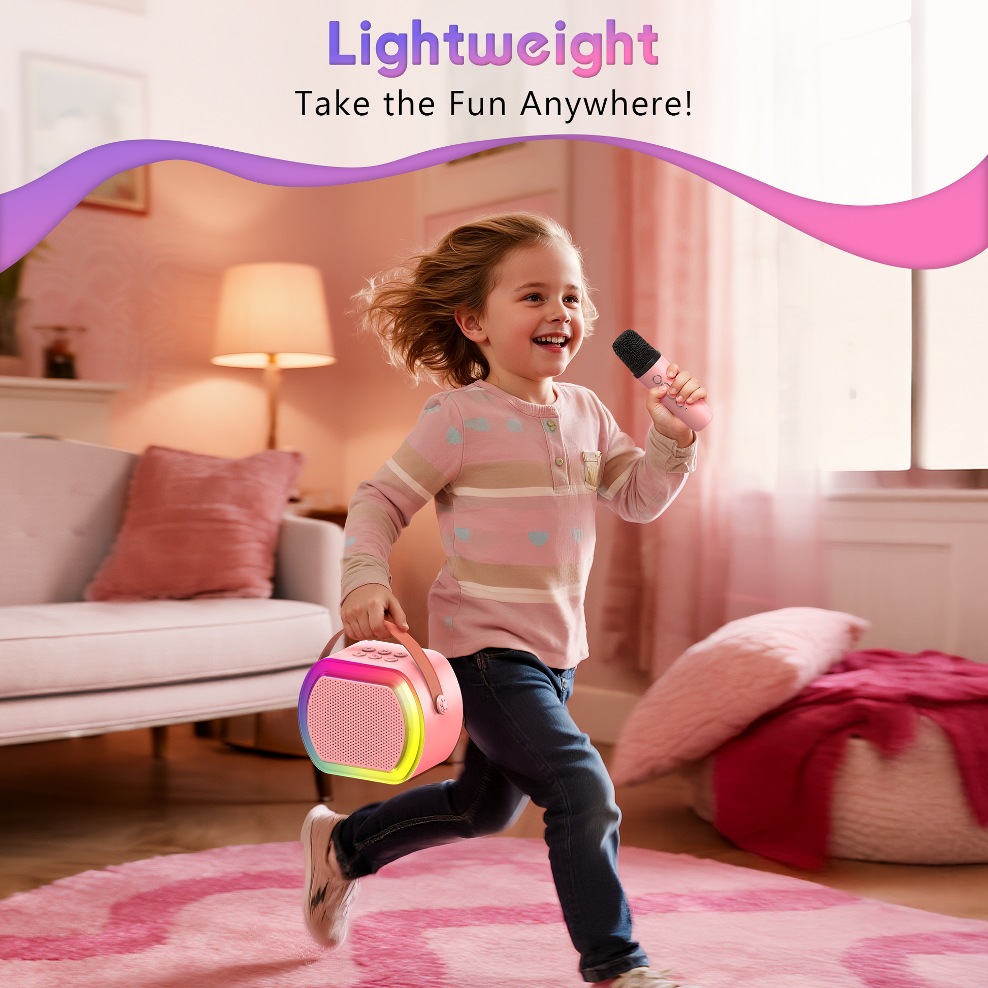 - [Cute & Compact] - This wireless karaoke microphone fits in your backpack,Comfortable handle sized for small hands; quick move from bedroom concerts to backyard dance-offs, This portable Bluetooth speaker and kids karaoke machine for Parties,Birthday , Meeting, Classroom, Family Activities, toys for girls/boy—fun without the bulk.
